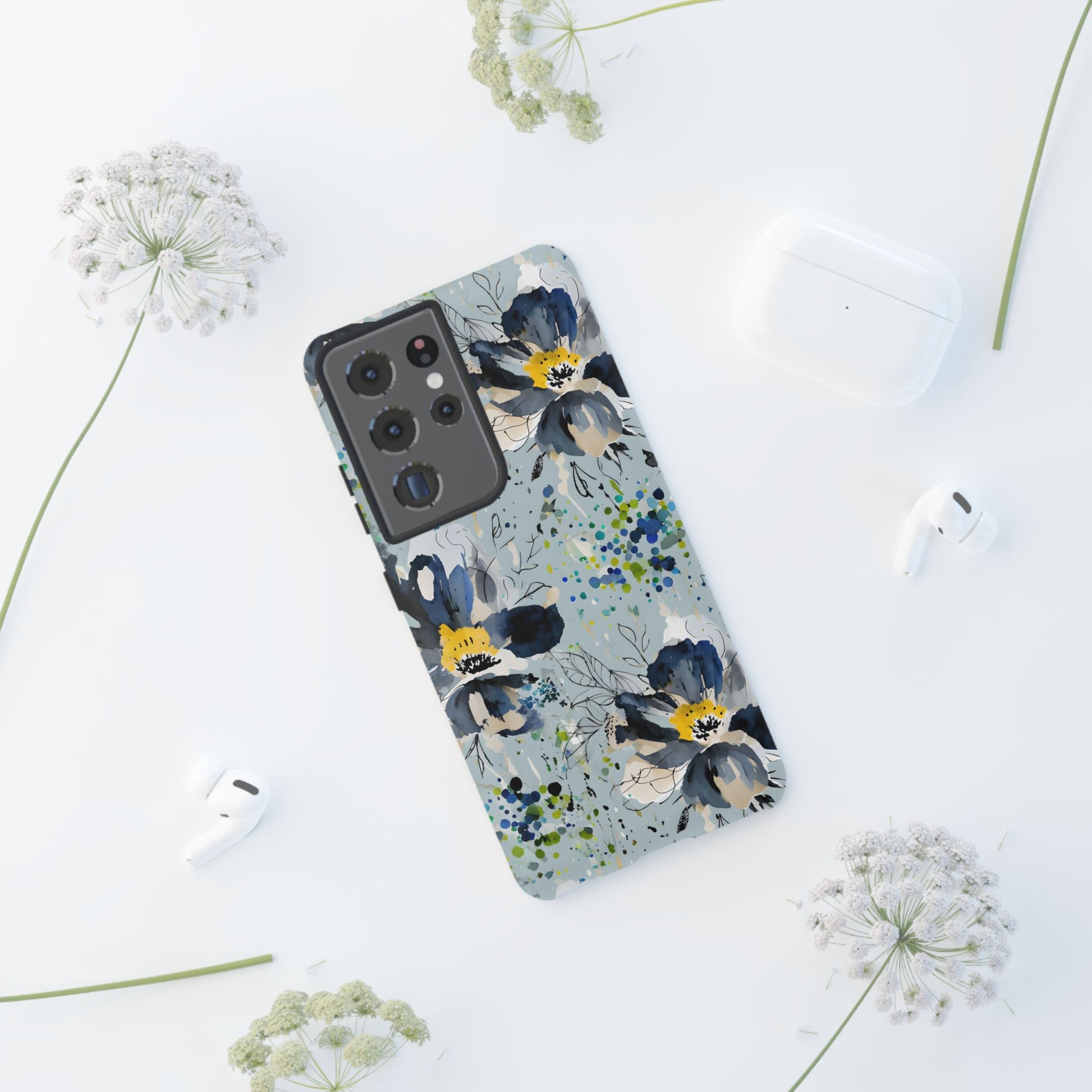 Blue Watercolor Floral Phone Case — Seamless Pastel Flower Protective Design Cover