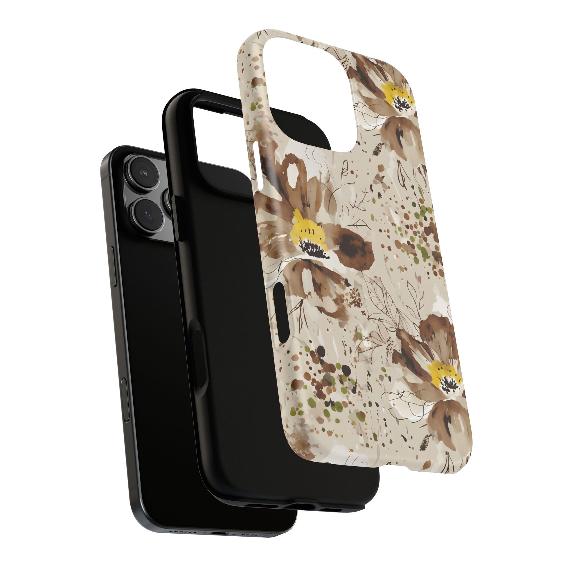 Brown Watercolor Floral Phone Case — Seamless Pastel Flower Protective Design Cover