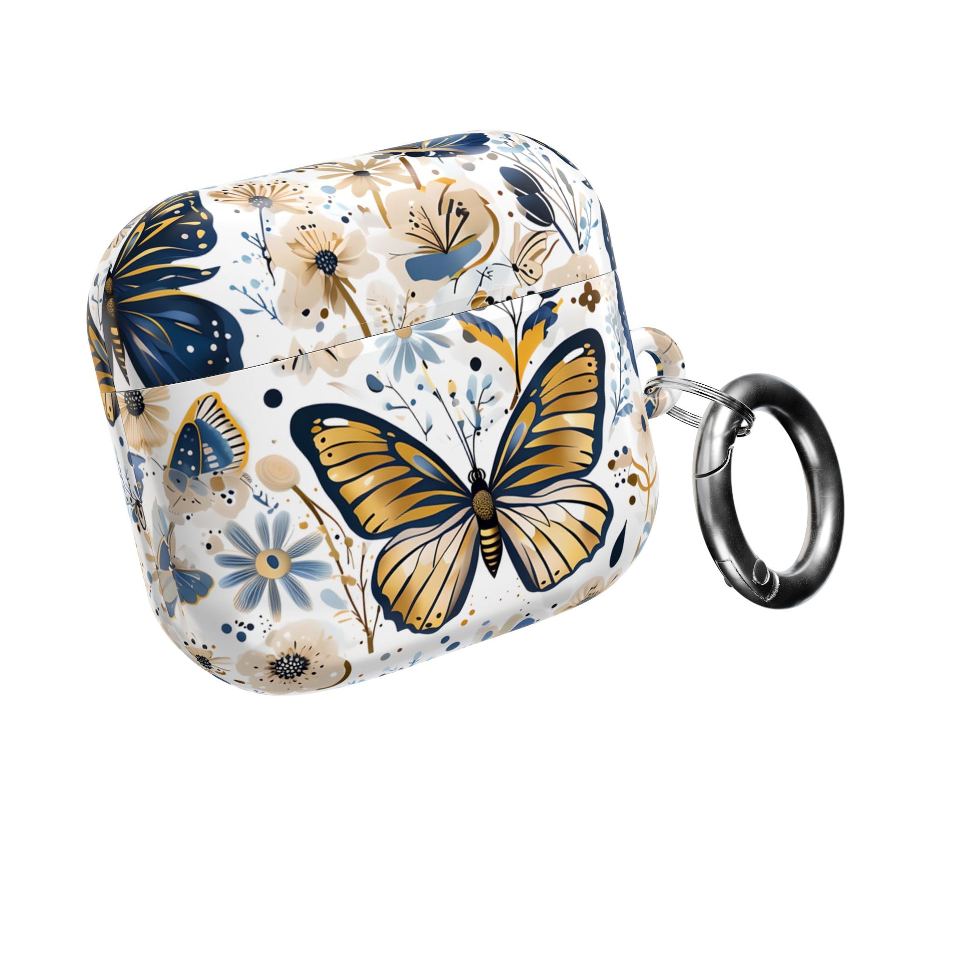 Gold & Navy Butterfly Floral AirPod Case — Decorative Charging Case