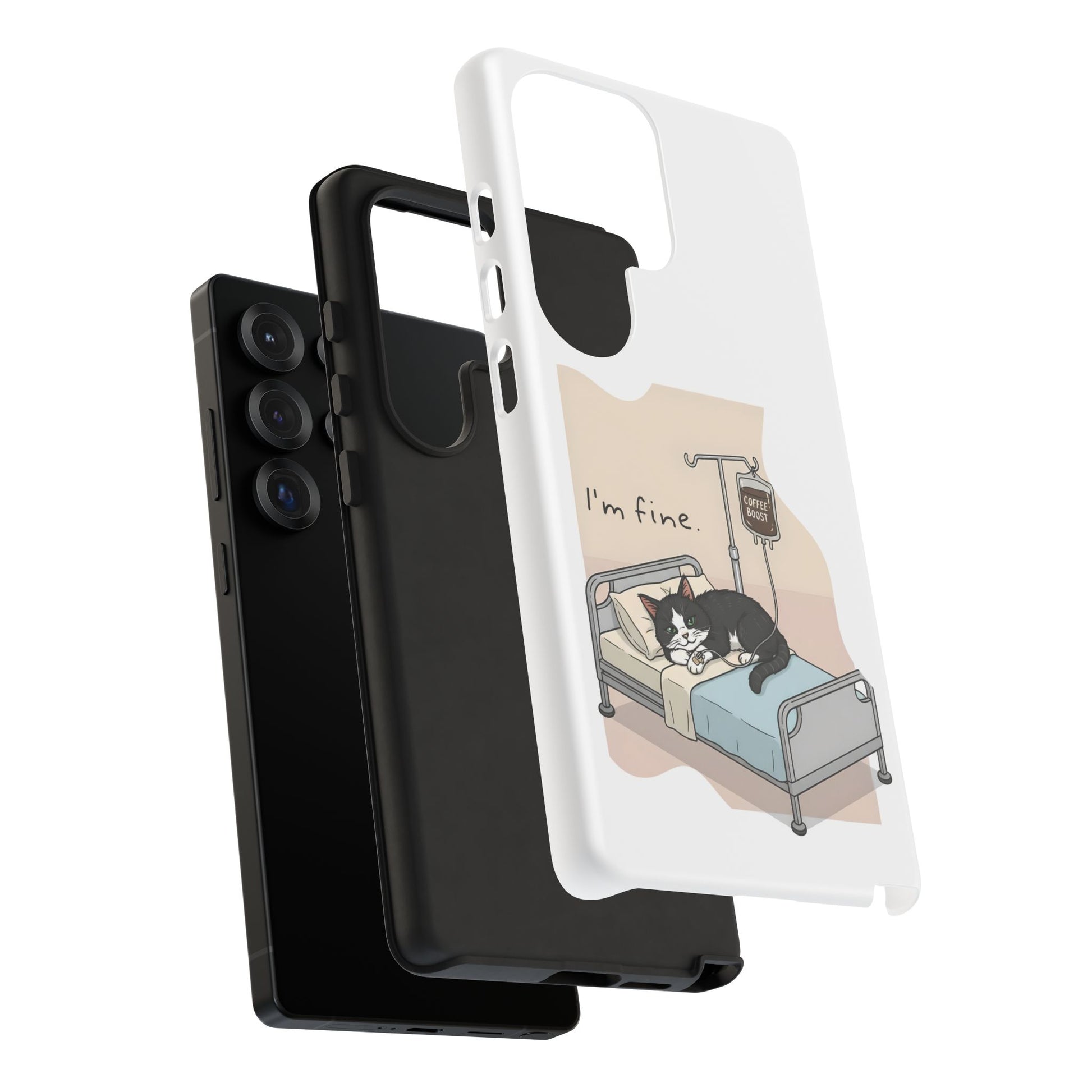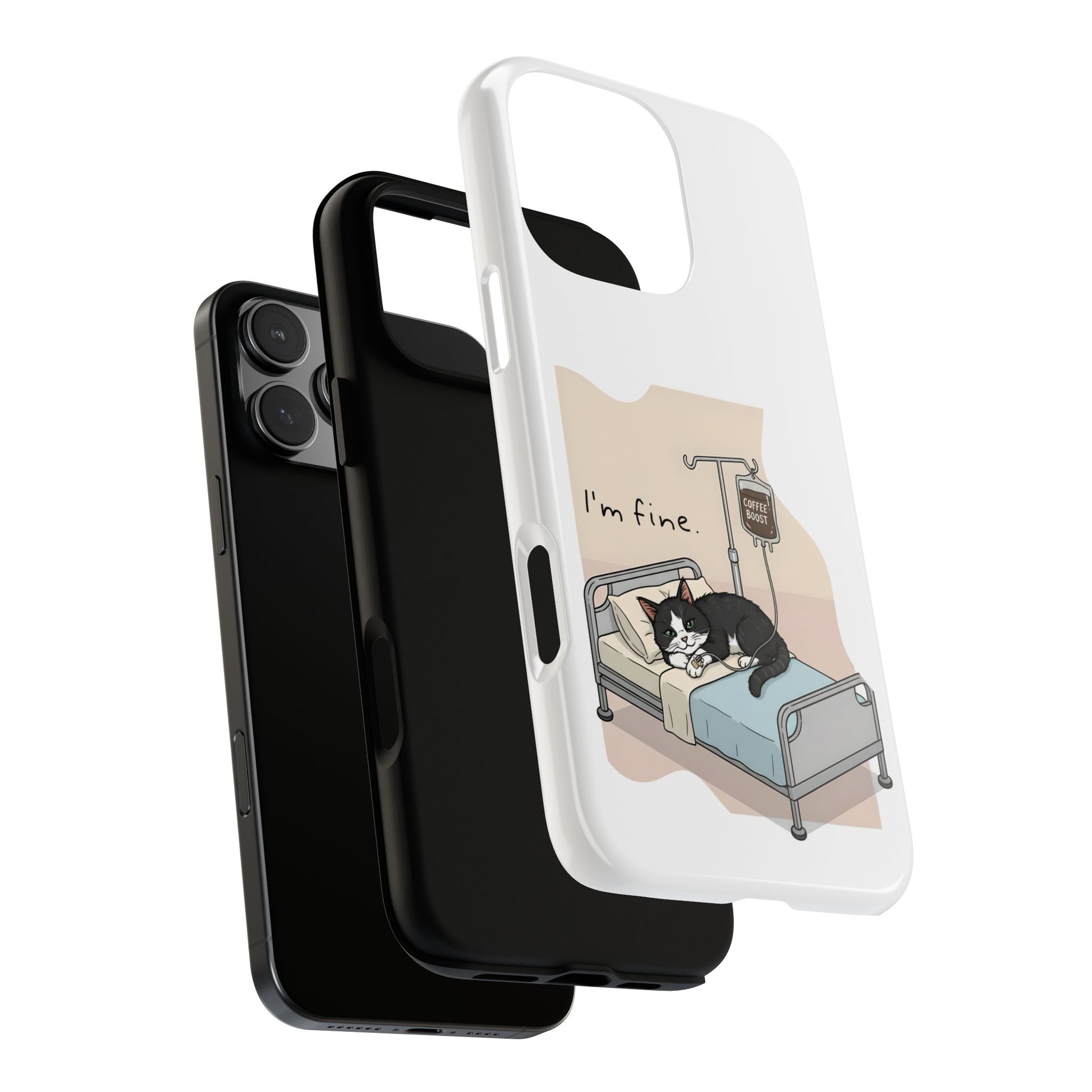 "I'm fine" Cat lying in bed - Tuxedo Cat Protective Design Cover
